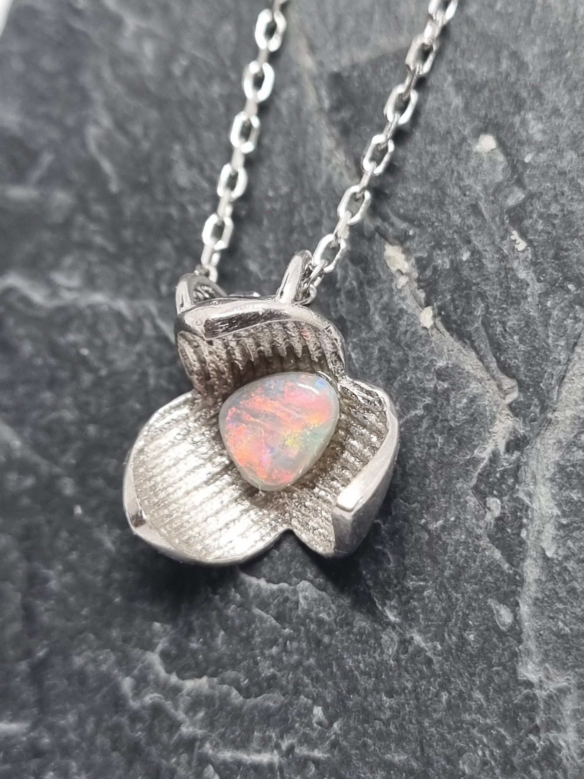 Anhänger: Opal in Silberblüte inklusive Silberkette