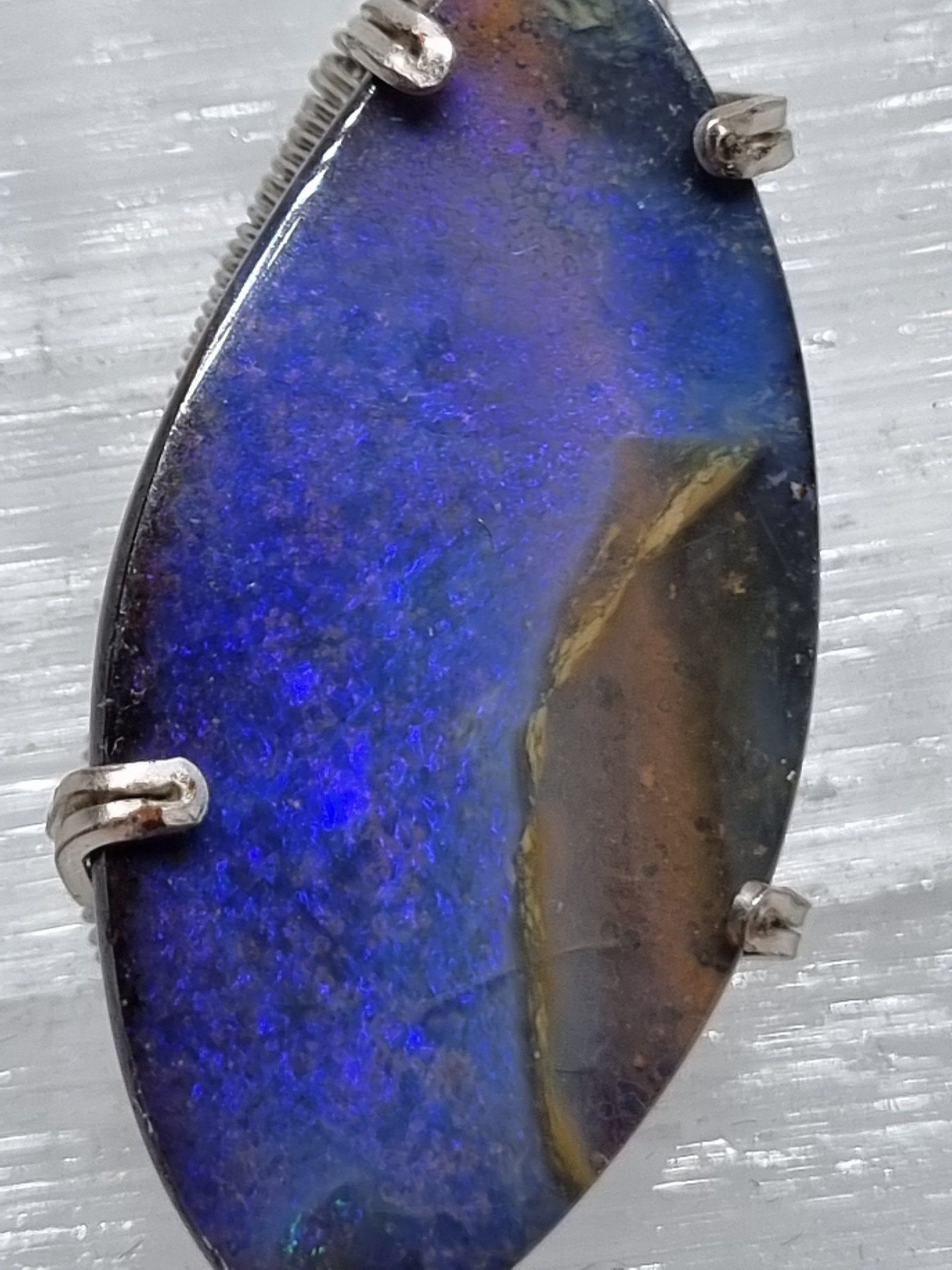 Anhänger: Boulder Opal in silberbeschichtetem