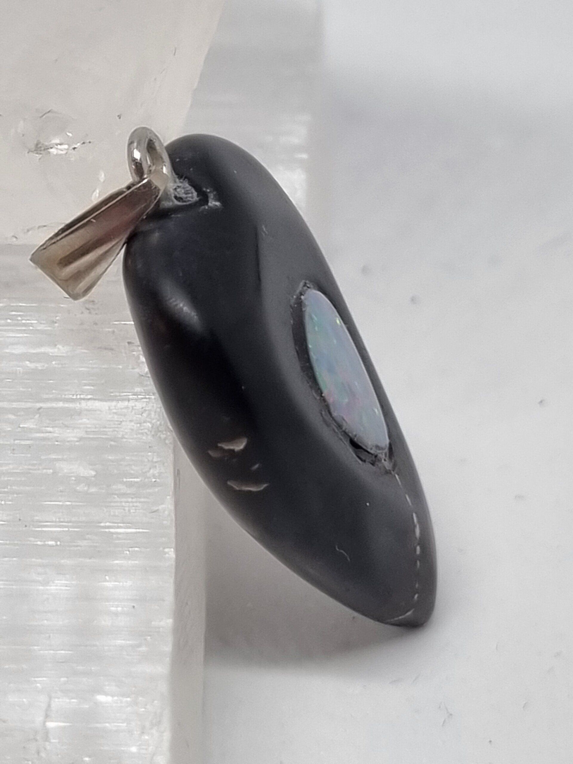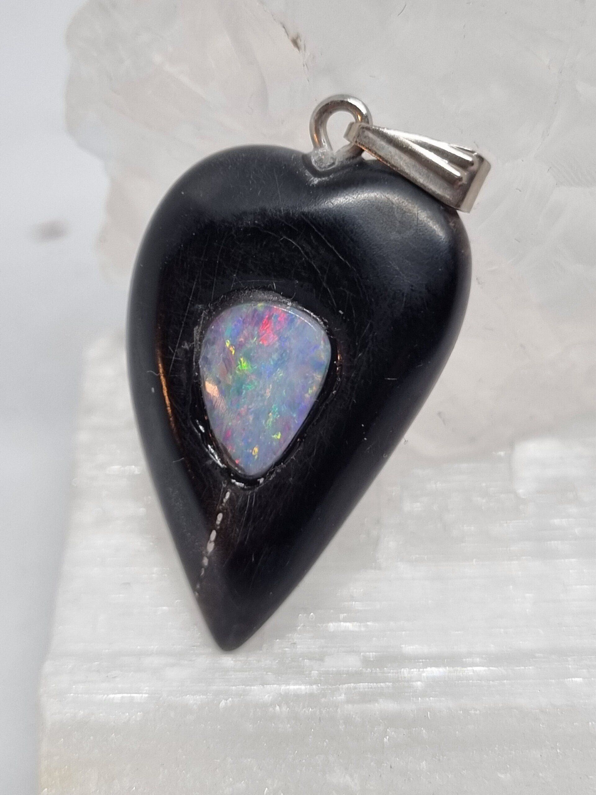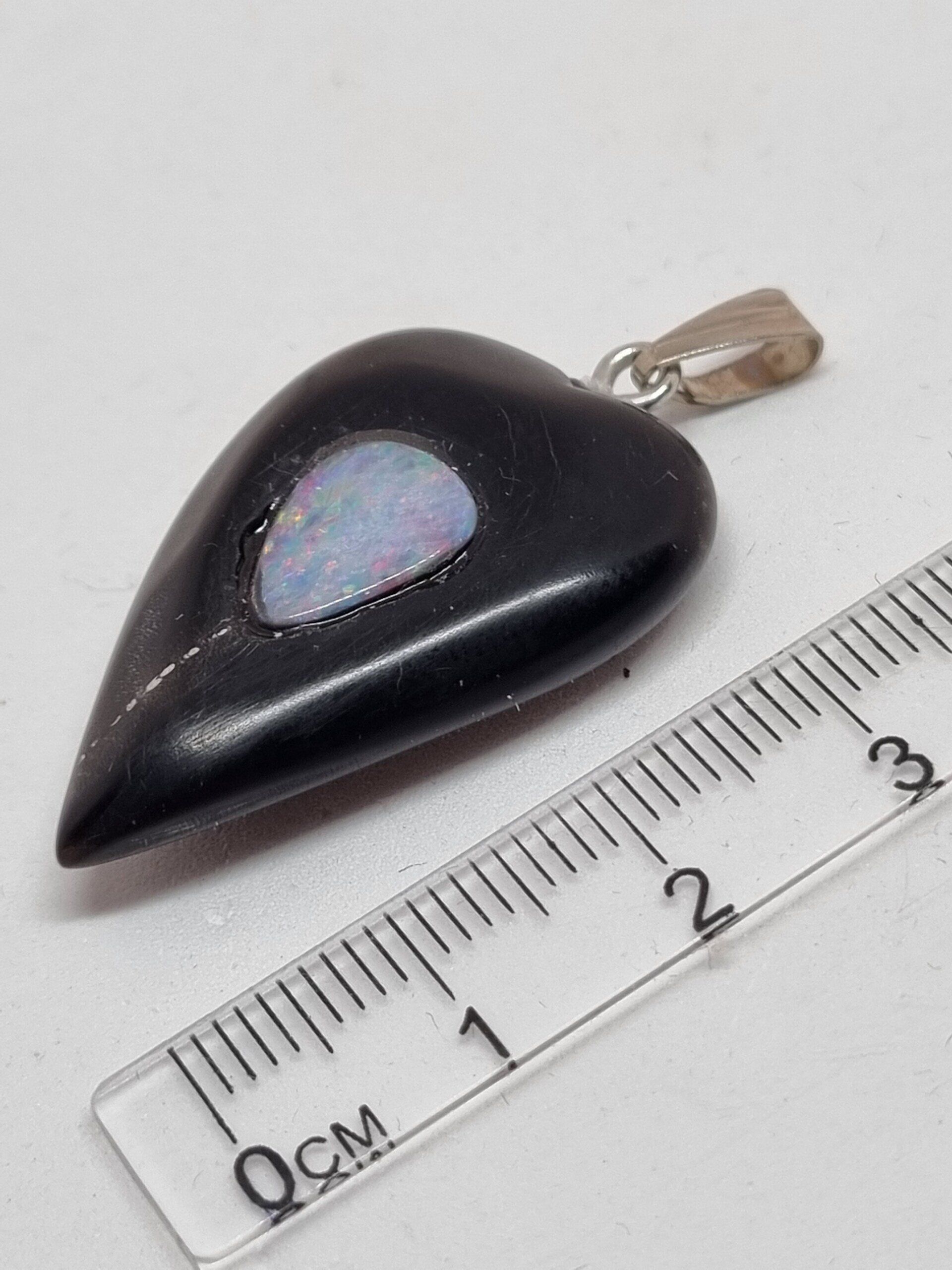 Anhänger: Büffelhorn Herz Anhänger mit Opal-Doublet-