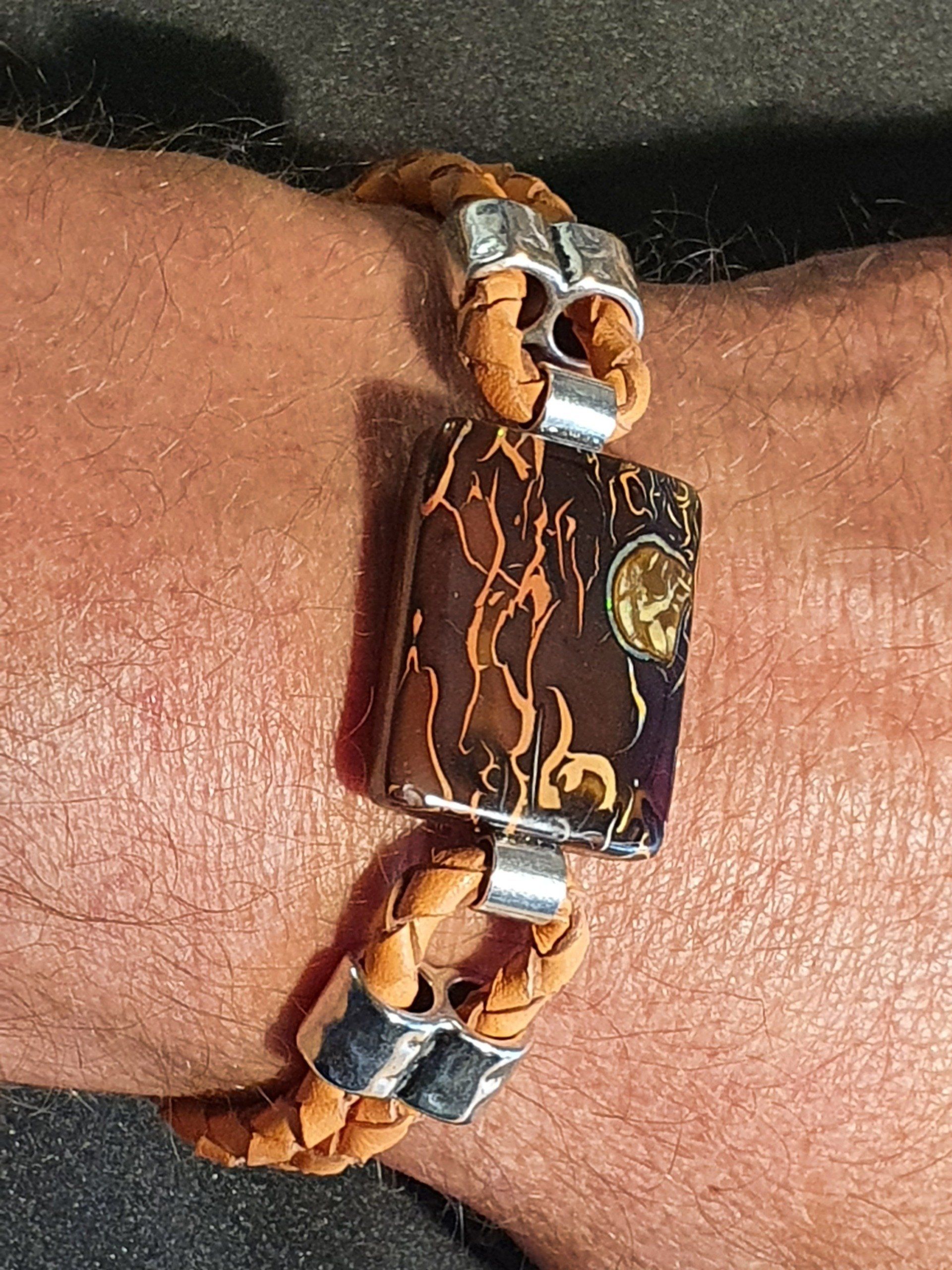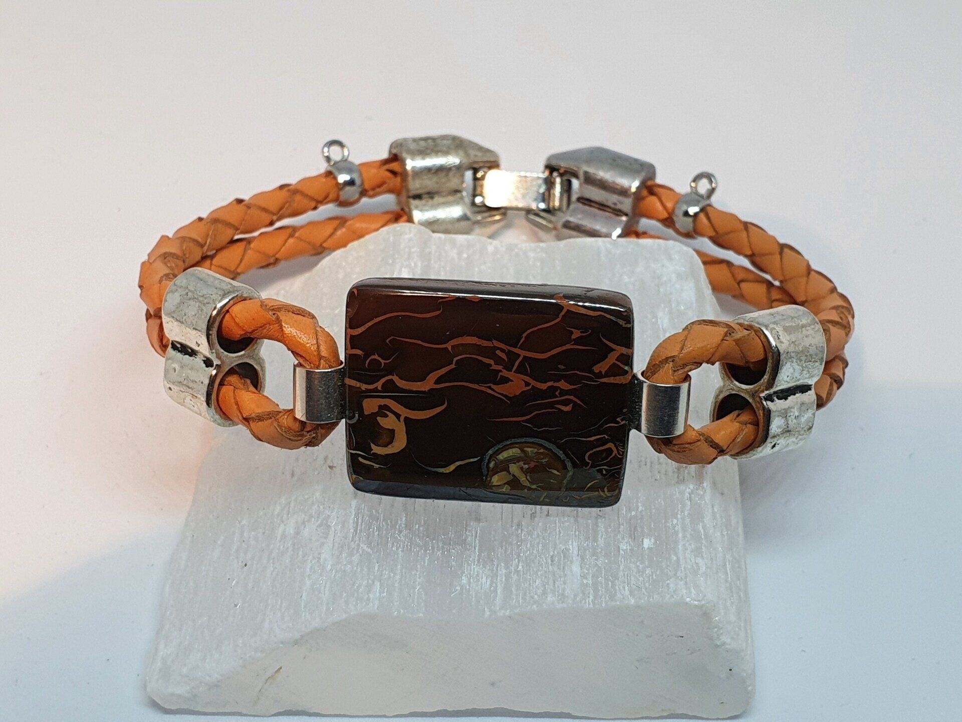 Leder: Abricot farbenes geflochtenes Rindsleder, 5mm.