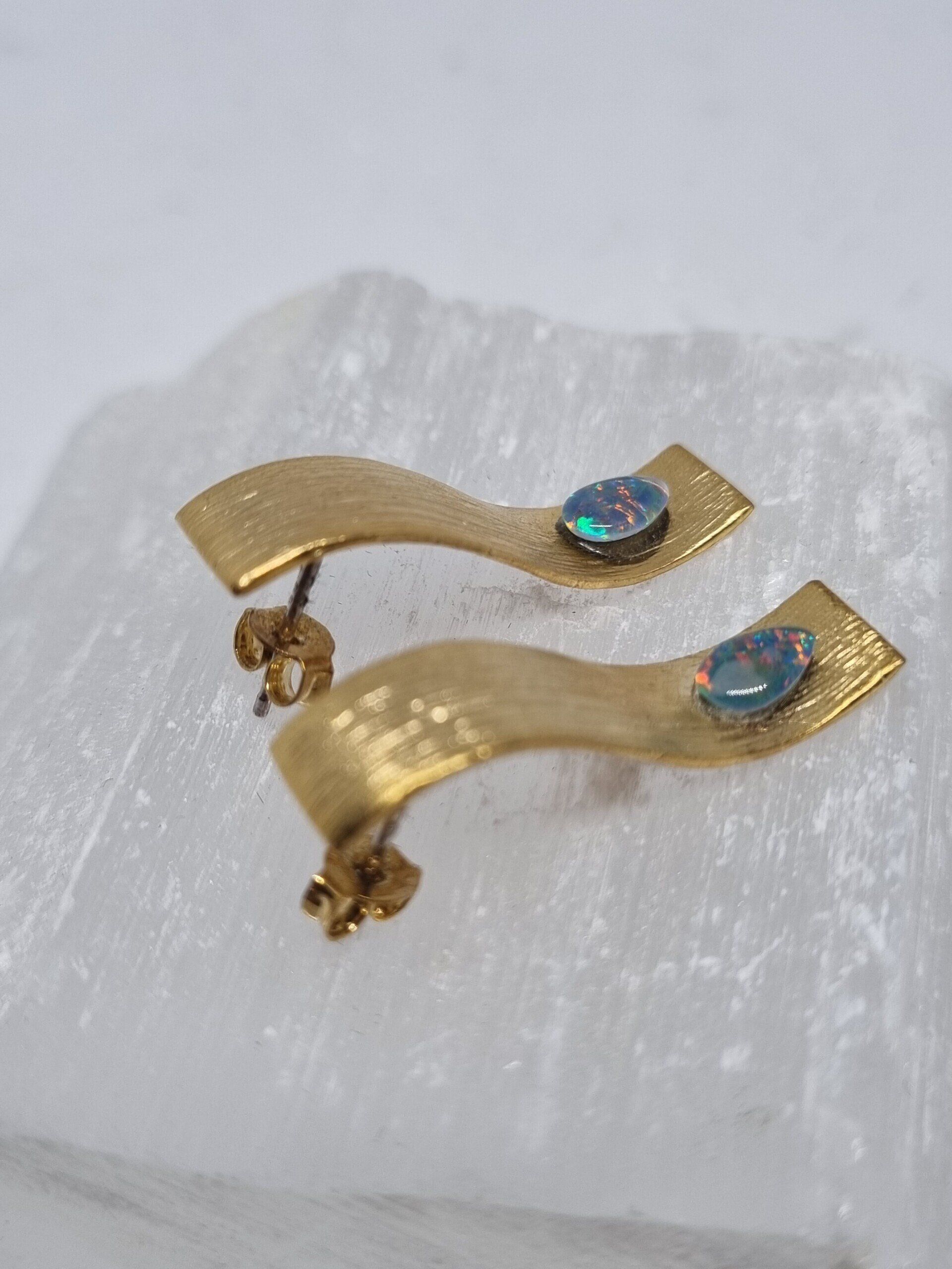 Gold beschichtete rechteckige wellenförmige Ohrstecker mit Opalen