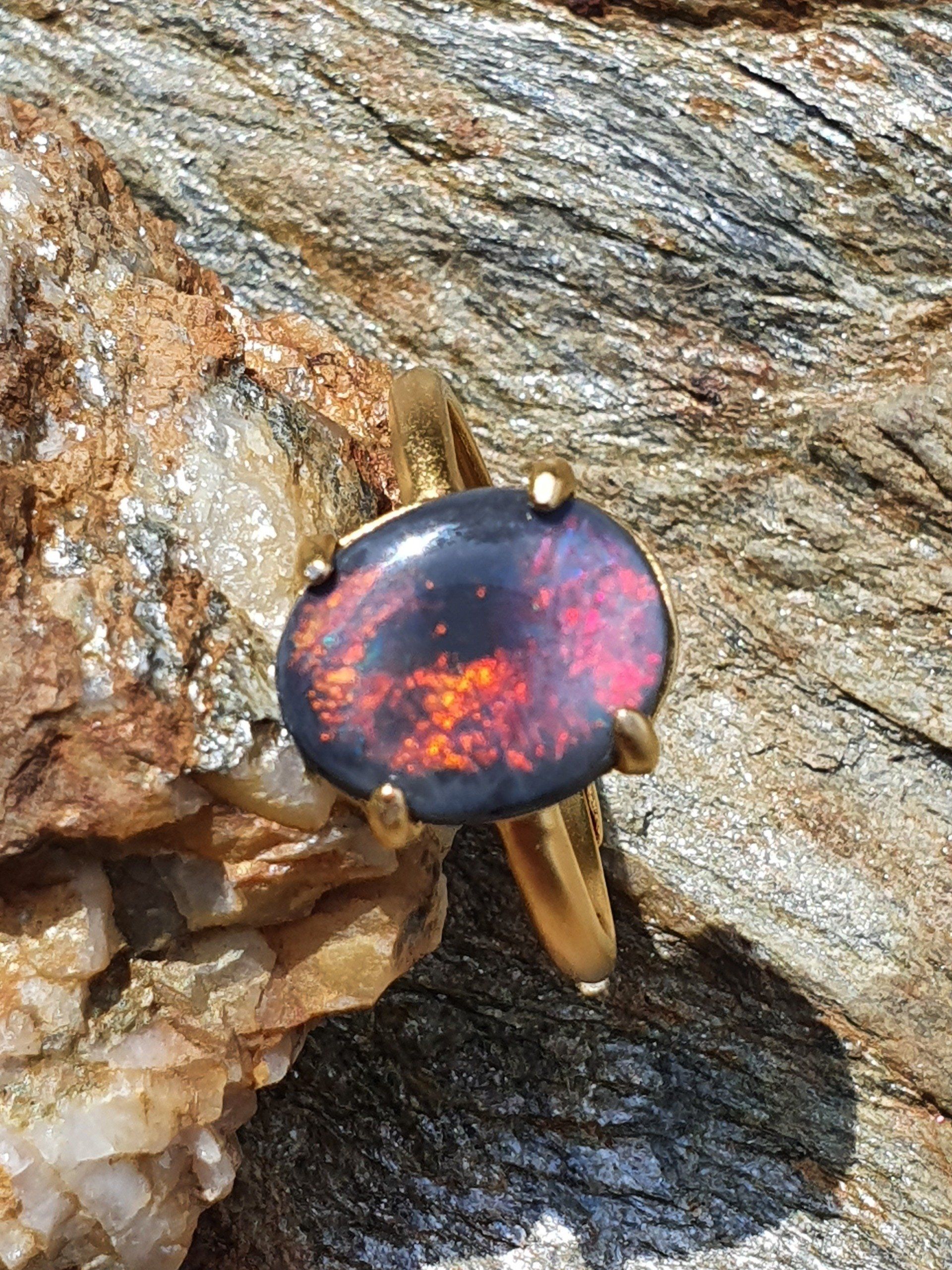 Farbe: Ovale Form mit excellentem multi Farbstreifen (viel rot)