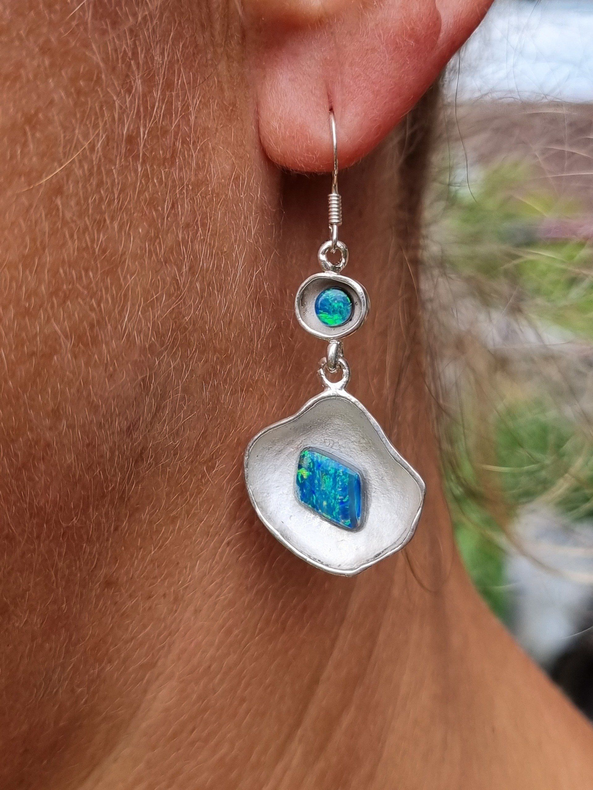 UNIKAT: 925 Sterling Silber Ohrringe mit Opalen