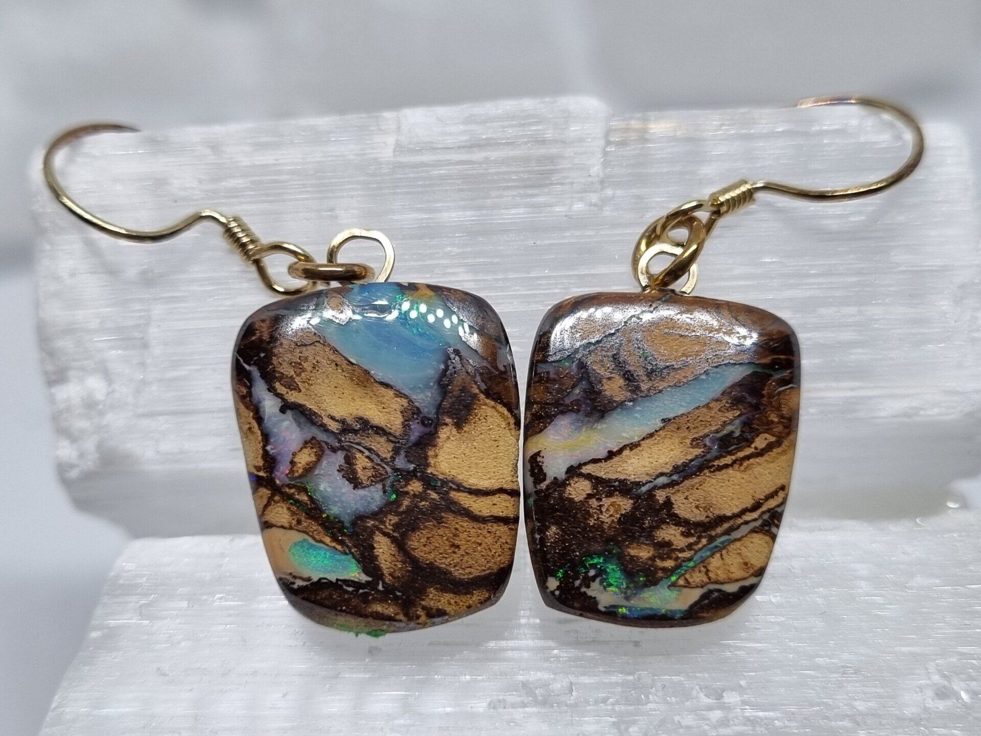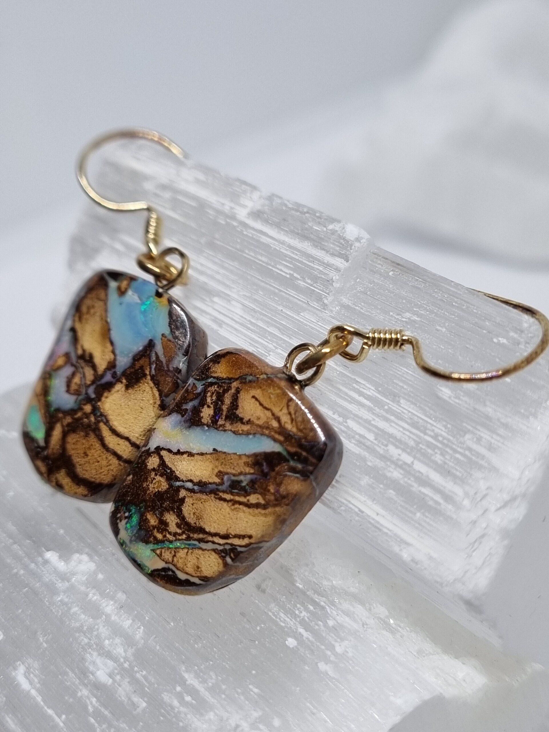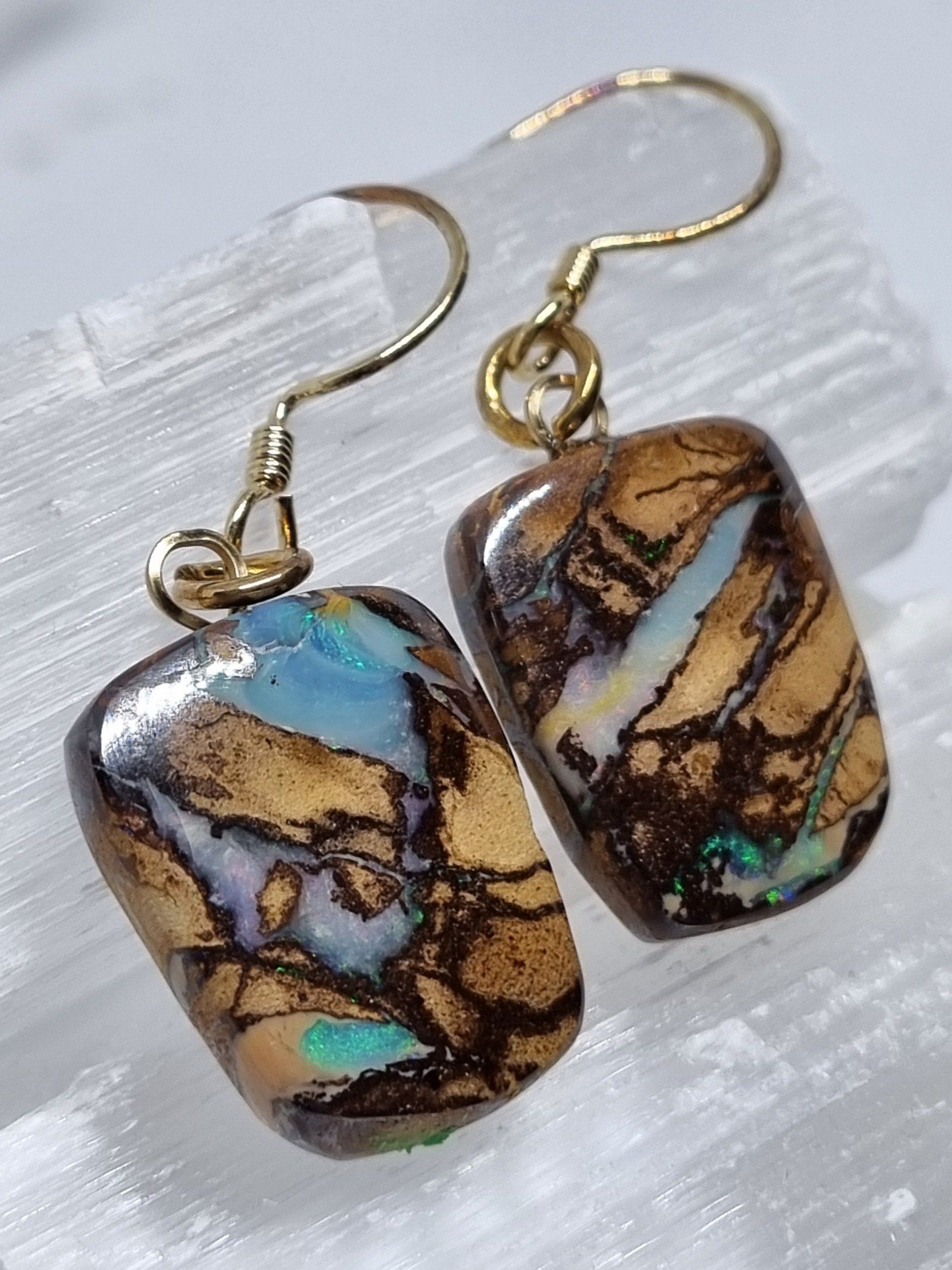 925 Sterling Silber, vergoldete Ohrhänger mit Boulder Opalen