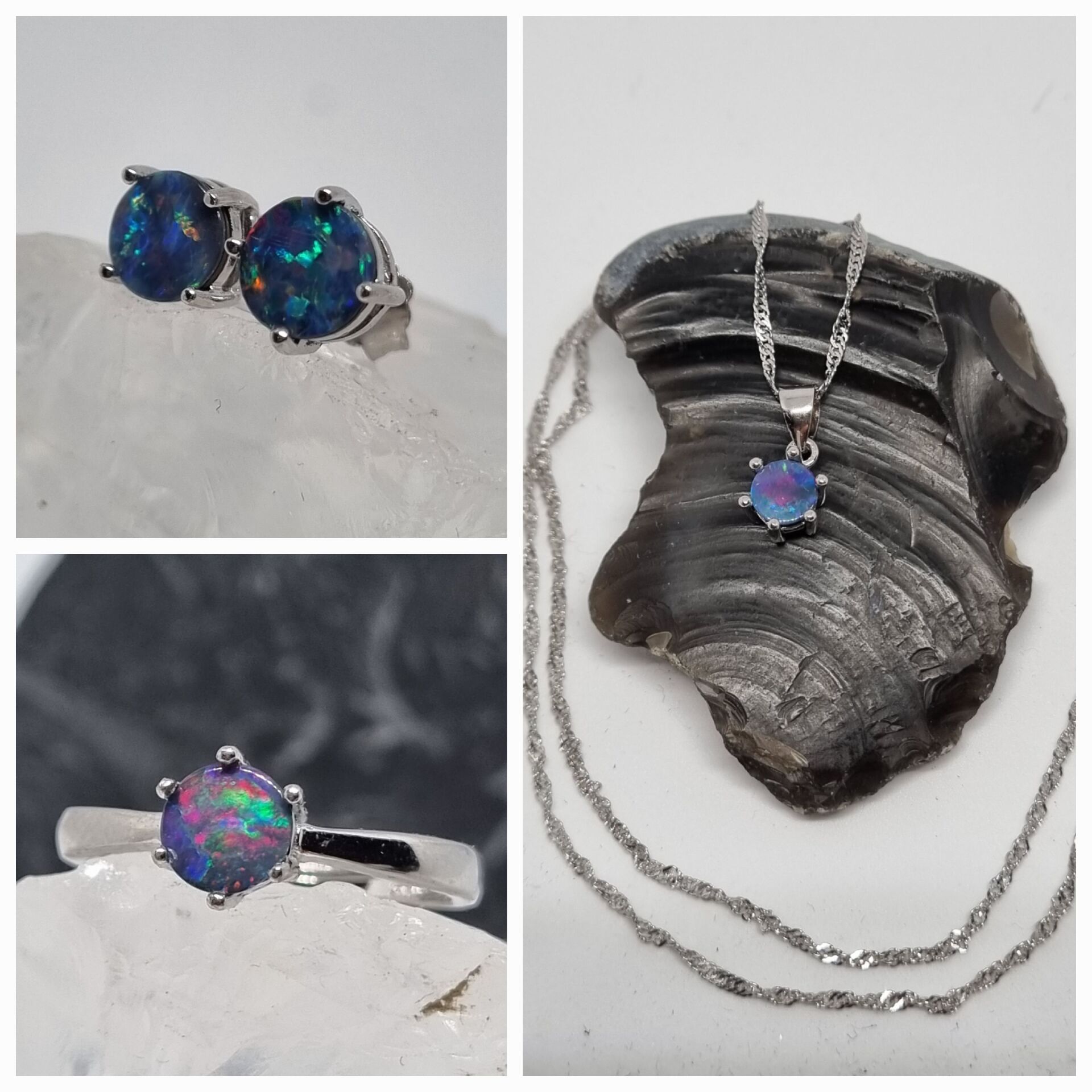 2 Ohrsteckern, 1 Ring (flexible Größe) sowie ein Anhänger mit Kette (45cm)