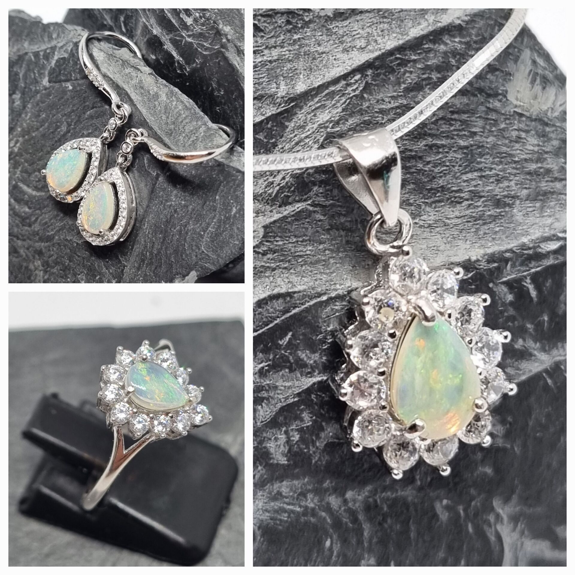 2 Ohrhängern, 1 Ring (flexible Größe) sowie ein Anhänger mit Kette (45cm)