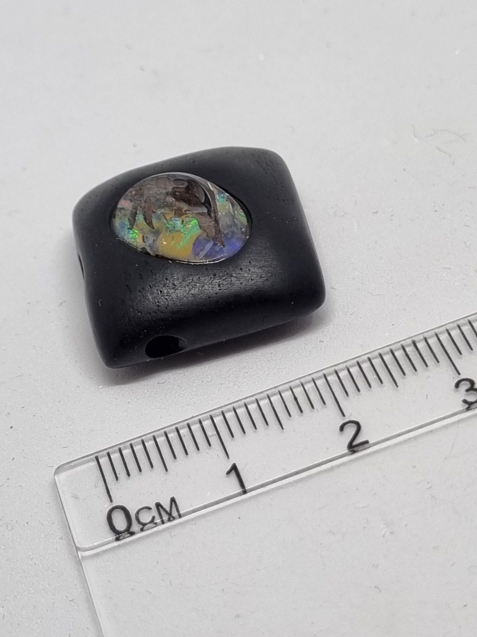 Anhänger: Ebenholz in Trapezform mit Opal-inlay