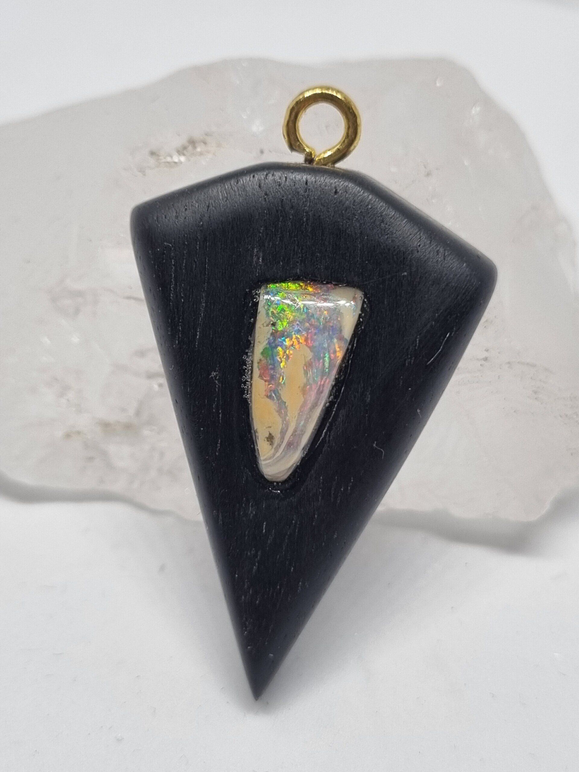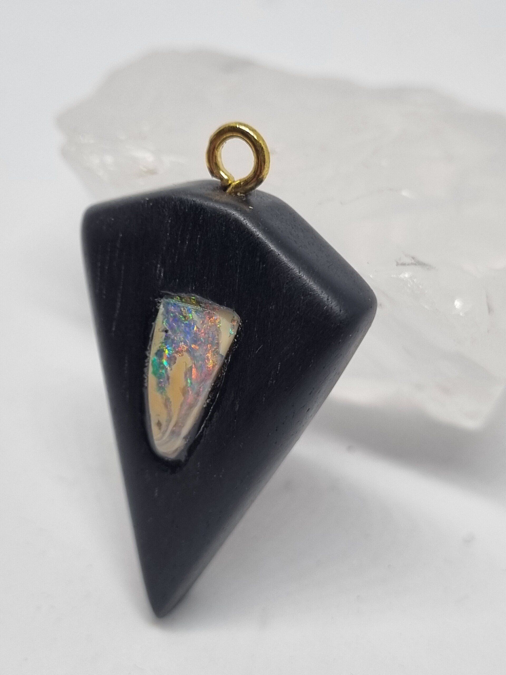 Anhänger: Ebenholz in Kite-Form mit Opal-inlay