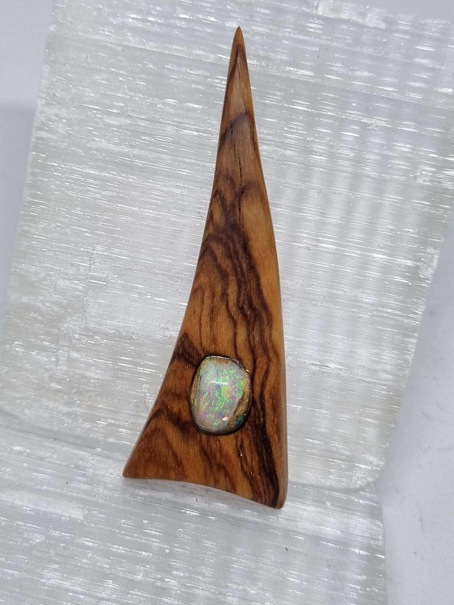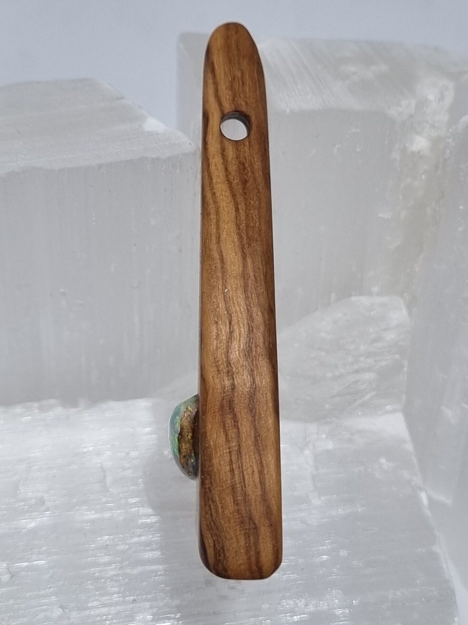 Anhänger: Olivenholz mit Opal-inlay