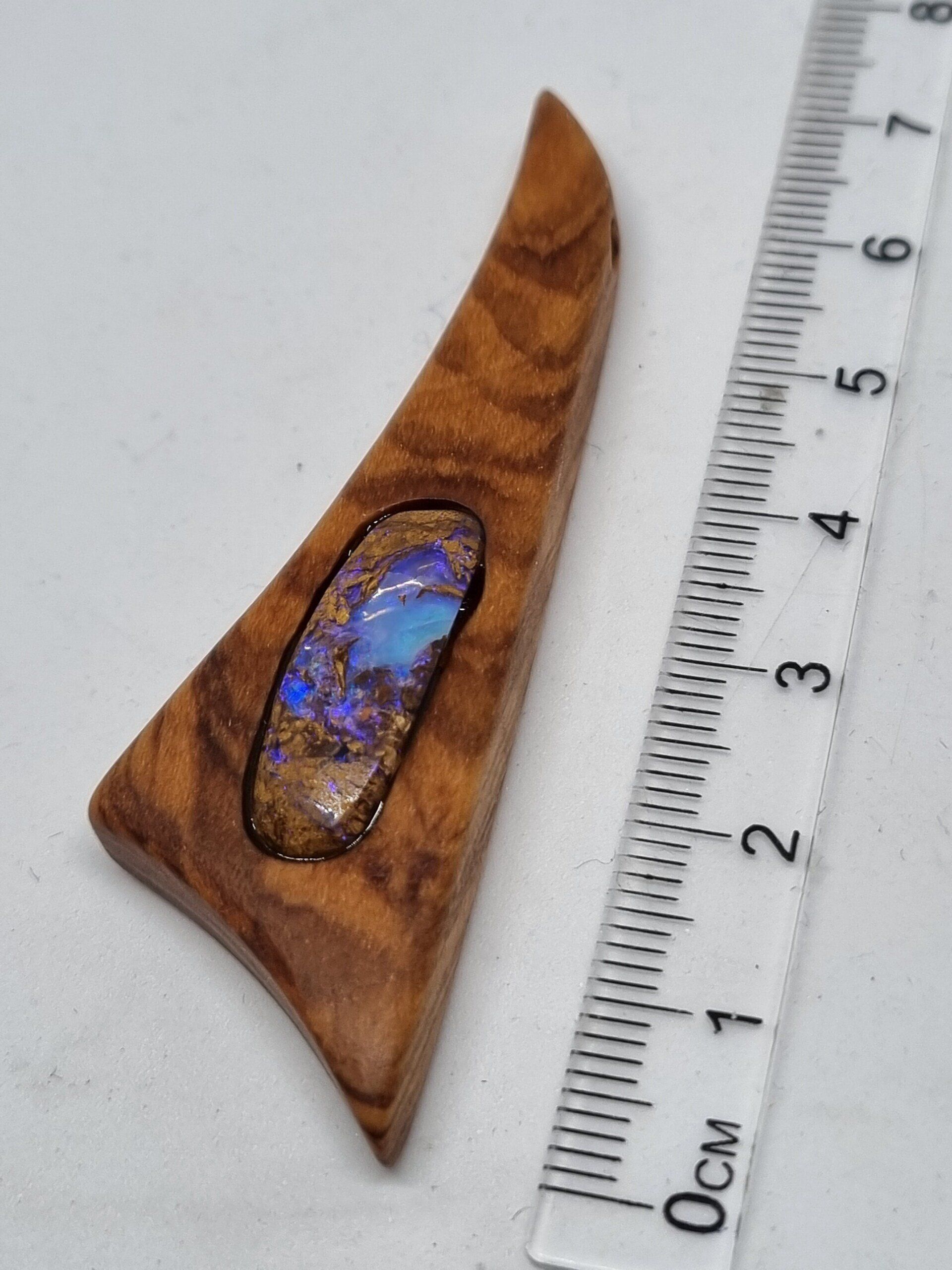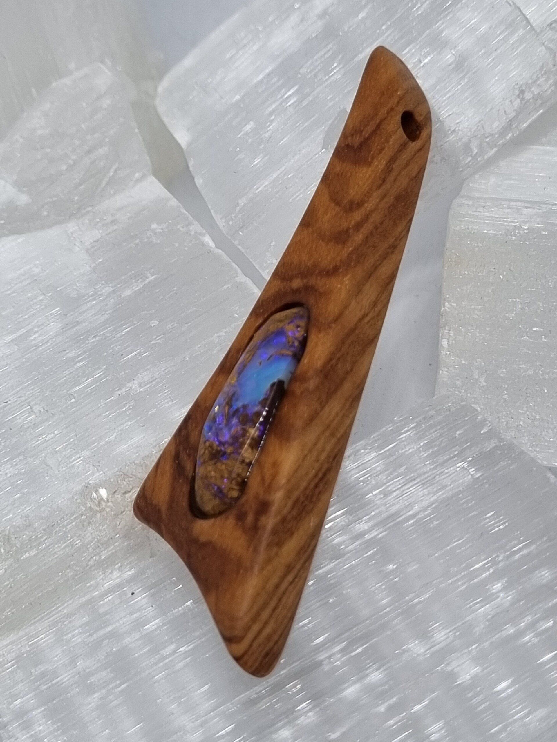 Anhänger: Olivenholz mit Opal-inlay